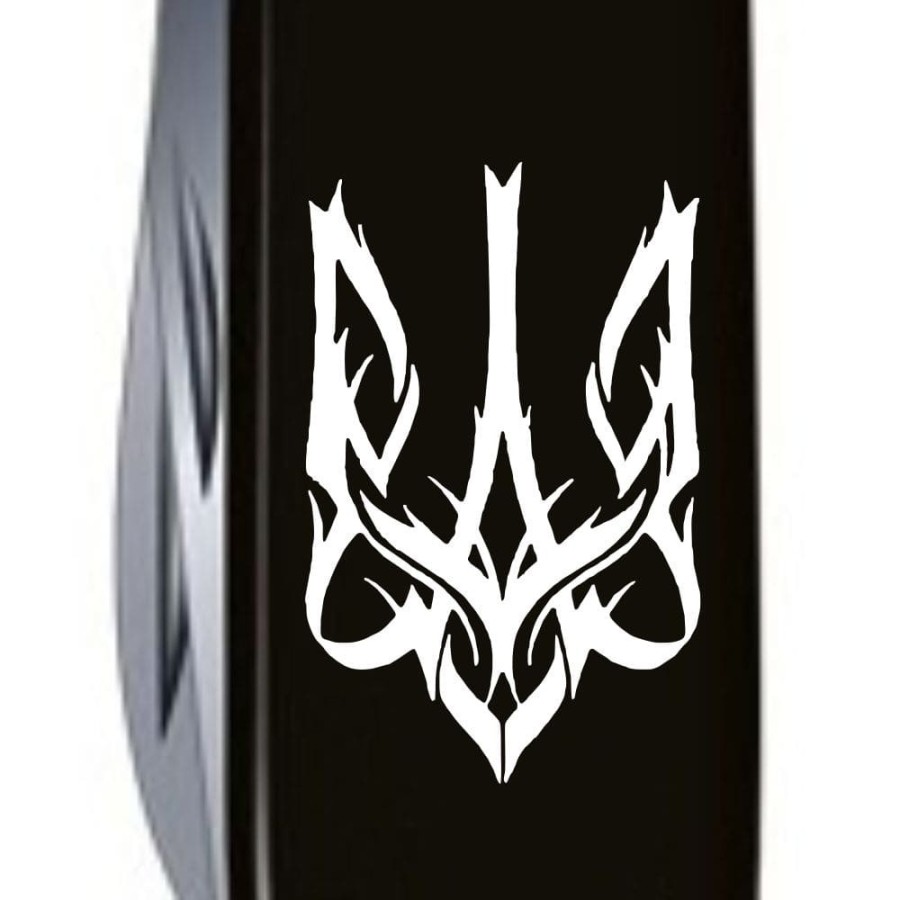 Ніж Huntsman Ukraine 91мм/15функ/чорний /Тризуб готичний білий.