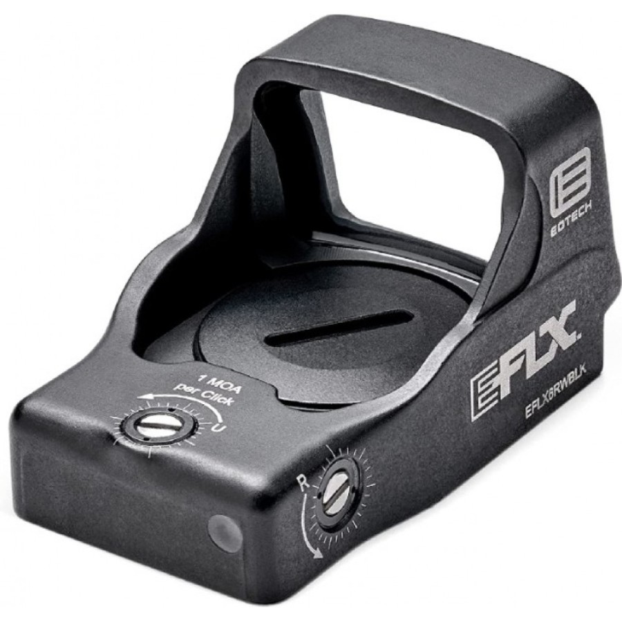 Мініатюрний приціл коліматора EFLX™ — це новинка EOTECH у галузі рефлекторної оптики. Основа, призначена для використання з пістолетом, виконана відповідно до розміру основи Leupold® Delta Point Pro™ і може бути адаптовано до напрямних з відповідним фрезеруванням. Міцний алюмінієвий корпус прицілу EOTech EFLX Mini має велике квадратне оглядове вікно, яке зберігає те ж співвідношення сторін, що й HWS EOTECH, що дозволяє легко та швидко знайти прицільну точку розміром 3МОА. Одна батарея CR2032 забезпечує близько 25 000 годин роботи у 5-му режимі яскравості. Приціл ідеально підходить для професійного використання, щоб швидко потрапити до мети. EFLX можна використовувати на пістолетних платформах Glock MOS (04) без додаткового кріплення. Крім того, що EFLX є ідеальним рішенням для пістолетного коліматорного прицілу, його можна використовувати як рішення зі збільшенням 1X на рушницях або гвинтівках.