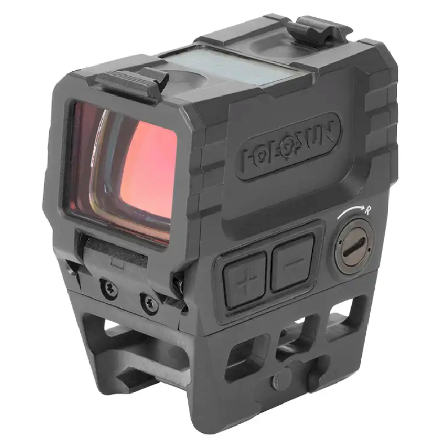 Рефлекторний коліматорний приціл Holosun AEMS (Advanced Enclosed Micro Sight) має подвійне джерело живлення. Працює приціл від сонячного елемента чи батарейки. Сонячна панель підтримує роботу батареї, діє як датчик освітленості (дозволяє пристрою автоматично регулювати яскравість точки залежно від освітлення) та у разі розрядки батареї є незалежним джерелом енергії.
