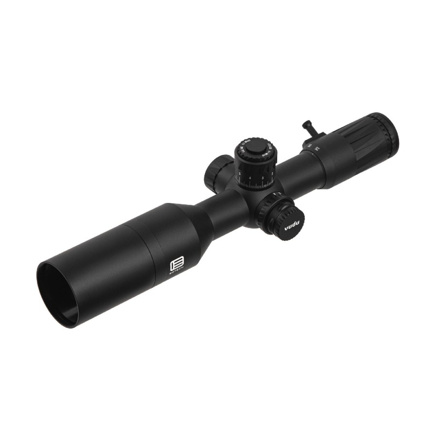 Vudu 5-25X50 у першій фокальній площині ідеально підходить для гвинтівок з короткою платформою. Маючи довжину 285 мм, 5-25X є одним із найкоротших гвинтівкових прицілів з першою фокальною площиною на ринку. Барабанчик включає систему блокування EZ Chek Zero Stop від EOTECH. Корпус прицілу виготовлений із авіаційного алюмінію, має цільну конструкцію з анодованим покриттям для виняткової міцності. Приціл пройдуть газоподібним азотом для захисту від запотівання. Цілісна трубка і кільця ущільнювачів запобігають попаданню вологи і пилу в приціл навіть в найсуворіших умовах. Міцна конструкція запобігає пошкодженню від сильної віддачі та грубого поводження. Скло високої щільності з низькою дисперсією та лінзами з покриттям антивідблиску забезпечує ефективне світлопропускання і неперевершену чіткість.